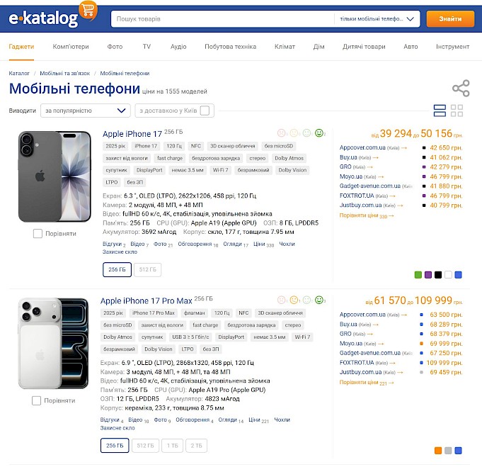 Важливим елементом E-katalog є система фільтрів. Завдяки їй можна швидко звузити коло пошуку. Наприклад, вибрати смартфон із конкретною діагоналлю екрана, певним обсягом пам’яті або акумулятором великої ємності. Такий підхід дозволяє зосередитися лише на тих моделях, які дійсно відповідають потребам користувача.