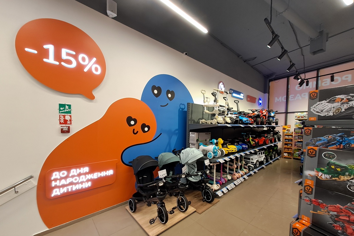 Серед нових об’єктів — великий двоповерховий магазин формату "стріт-ритейл" у місті Дніпро. Такий формат дозволяє зручно розмістити широкий асортимент товарів для дітей різного віку — від іграшок і товарів для немовлят до дитячого транспорту, а також забезпечує комфортний доступ для покупців.