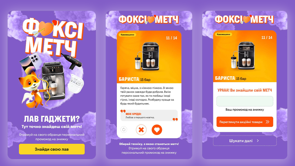 До дня закоханих-2026 Фокстрот вирішив розширити межі святкових пропозицій і запустив Фоксі Метч – інтерактивну платформу для «технознайомств» на Foxtrot.ua, де користувачі можуть знайти не другу половинку, а свій ідеальний гаджет.