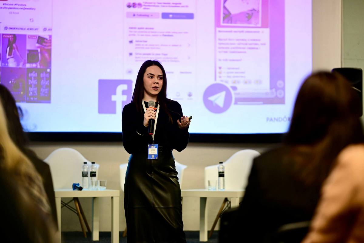 Після перерви з презентацією «Від інфлюенсерів до ком’юніті: як Pandora в Україні будує комунікацію без власних соцмереж» виступила Валерія Русаненко, Chief Мarketing Officer Pandora.