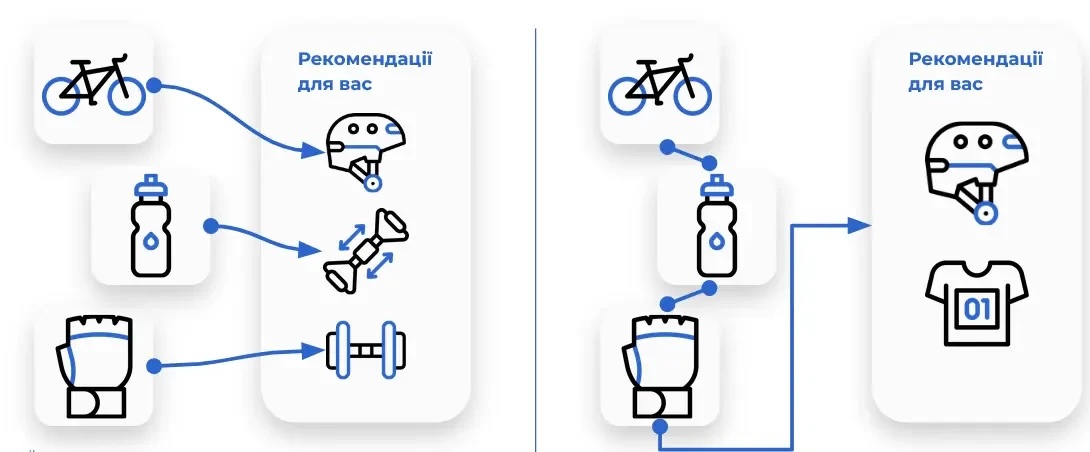 - Контекстуальне розуміння: система враховує не лише що купував користувач, але й коли, в якому порядку, з якими перервами.