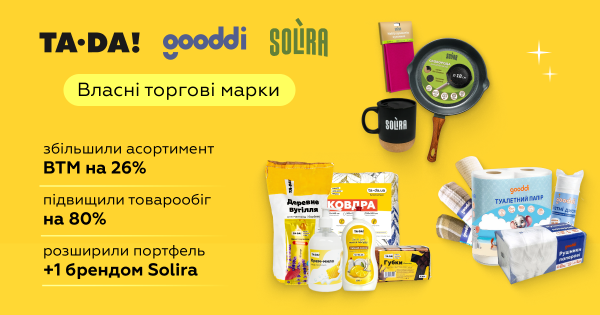 Окремим кроком у розвитку private label у 2025 році став запуск нової власної торгової марки Solira, яка доповнила портфель брендів TA-DA! та спрямована на збільшення позицій ВТМ у категоріях текстилю та посуду.