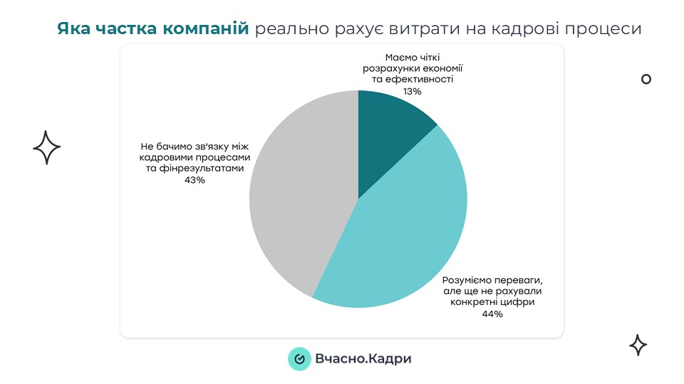 Водночас 43% опитаних кадрових фахівців відзначили, що в компанії не бачать зв'язку між кадровим процесом та фінансовими результатами.