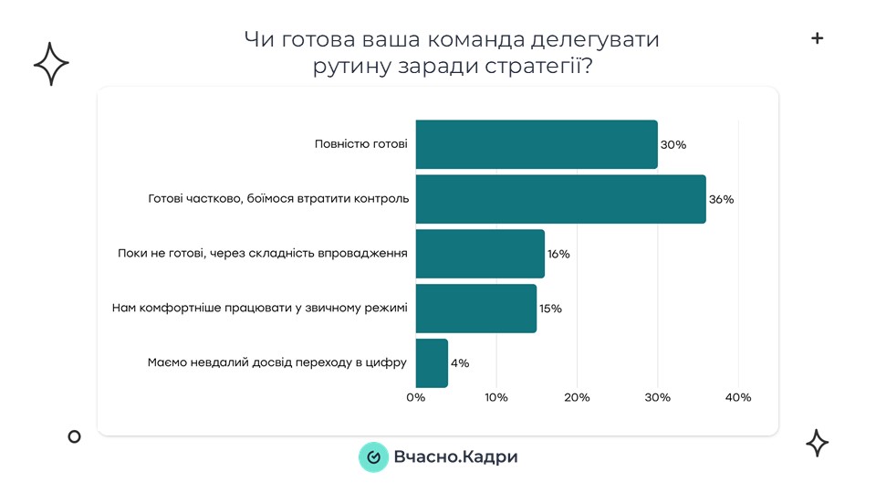 Так само не менш важливою є готовність команди HR відділу до цих змін. Багато хто вже декларує готовність до змін, які дозволять працювати ефективніше.