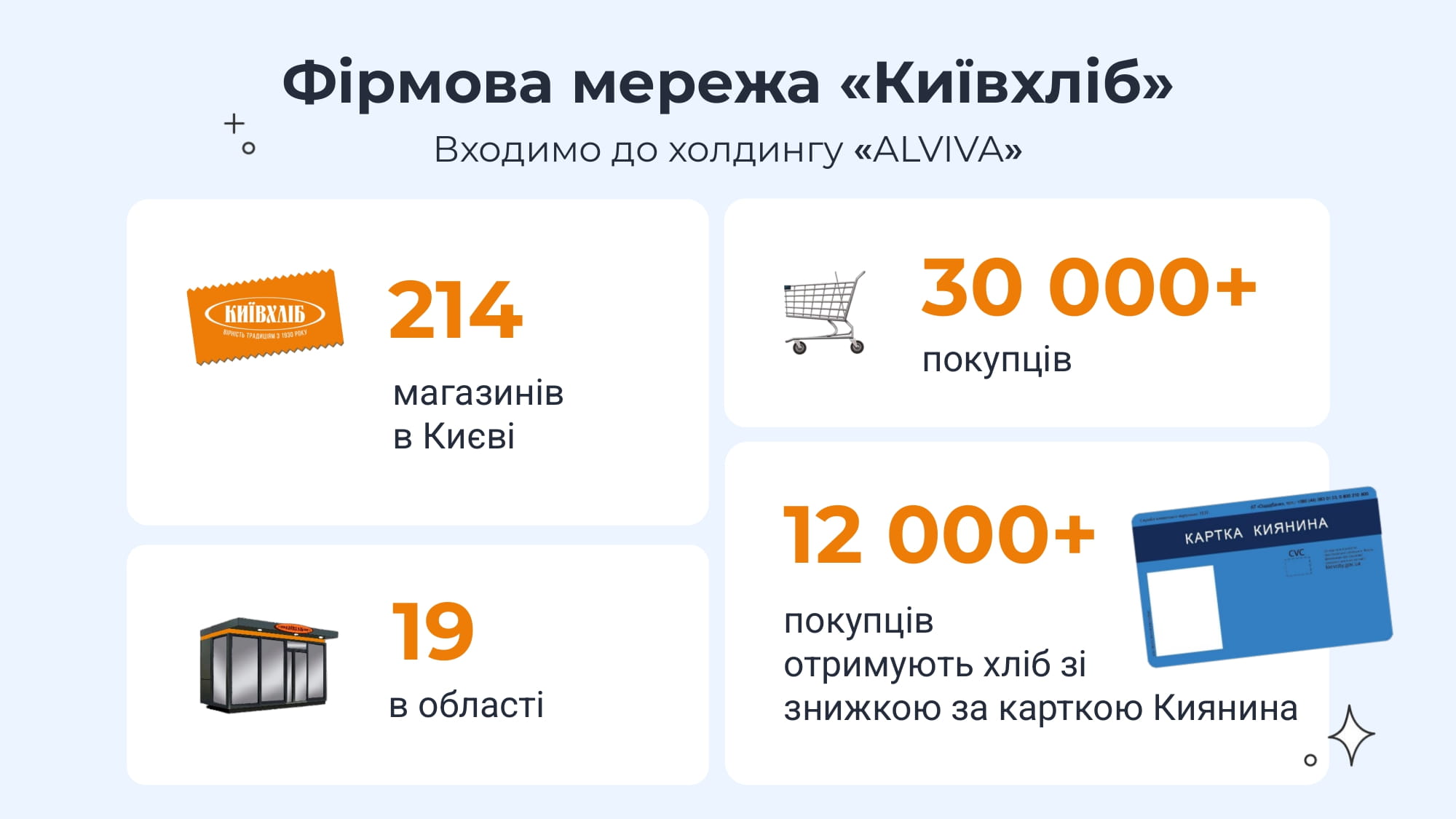 Станом на початок червня фірмова мережа Київхліб налічує 214 магазинів у Києві та 19 в області, має понад 30 000 покупців та понад 12 000 клієнтів отримують хліб зі знижкою за карткою киянина.