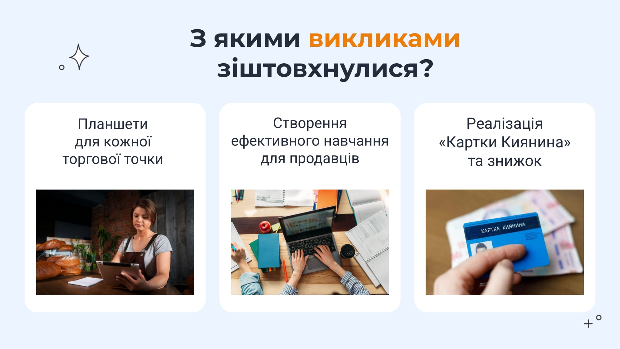 Почали етап впровадження та зіткнулися з проблемою – навчання персоналу. Це був реальний виклик, адже середній вік продавця – 50+, і потрібно було навчити користуватися планшетом. Тоді створили канал на YouТube: записували ролики, викладали і кожен співробітник міг подивитися чітку інструкцію.