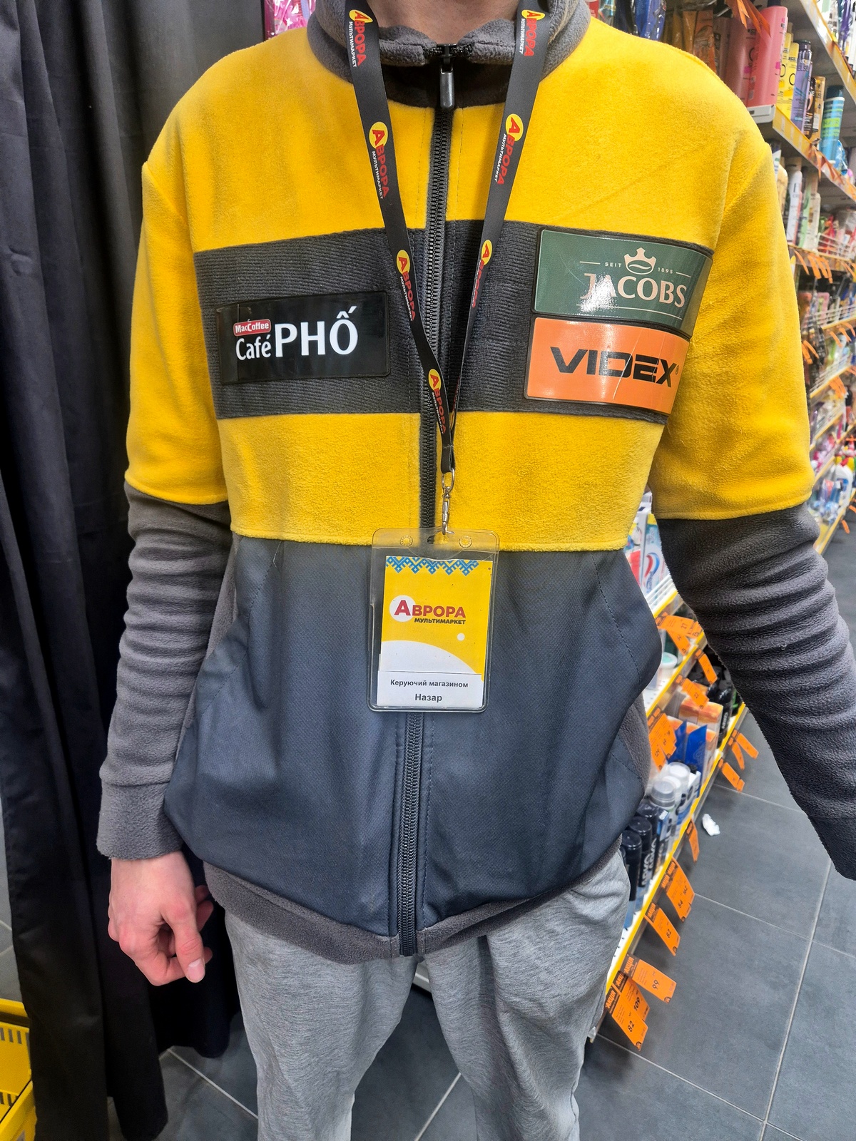 У кейсі мультимаркетів Аврора першим сценарієм стало використання патчів як рекламного носія в торговельному просторі. Тепер форма персоналу працює як постійна точка контакту з клієнтом у залі з гарантованим охопленням без додаткових витрат на друк і розміщення класичних POS-матеріалів.