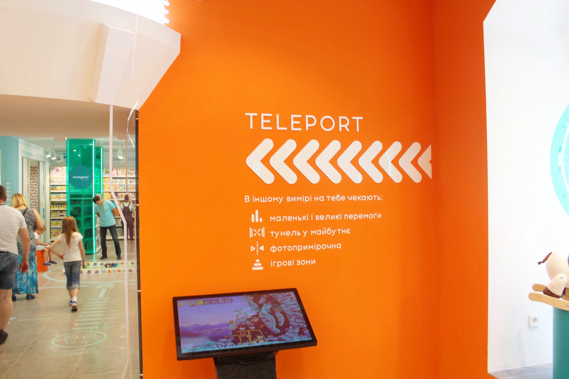 Грати тут закликає практично весь простір, навіть віртуальна полка, за допомогою якої в інтернет-магазині MYplay можна самостійно вибрати і замовити додому будь-який товар. А ще можна переключити дисплей в ігровий режим і пограти в Angry Birds або іншу встановлену тут гру. Але довго біля них не затримаєшся, адже поруч знаходиться “Телепорт”, який переносить в іншу частину торгово-ігрового простору.