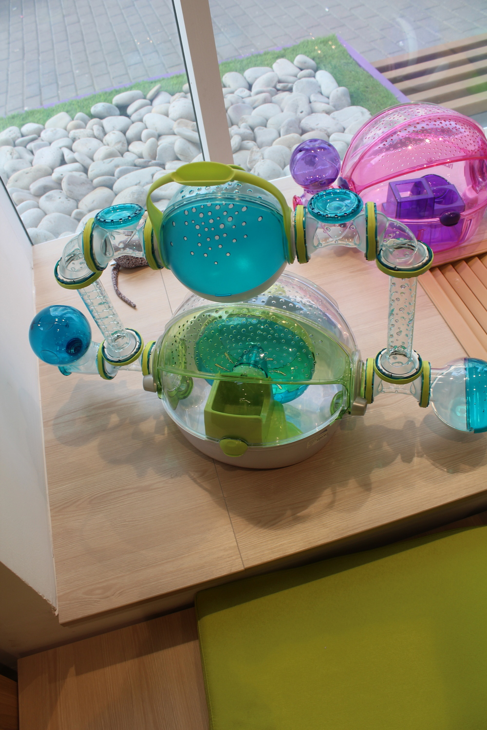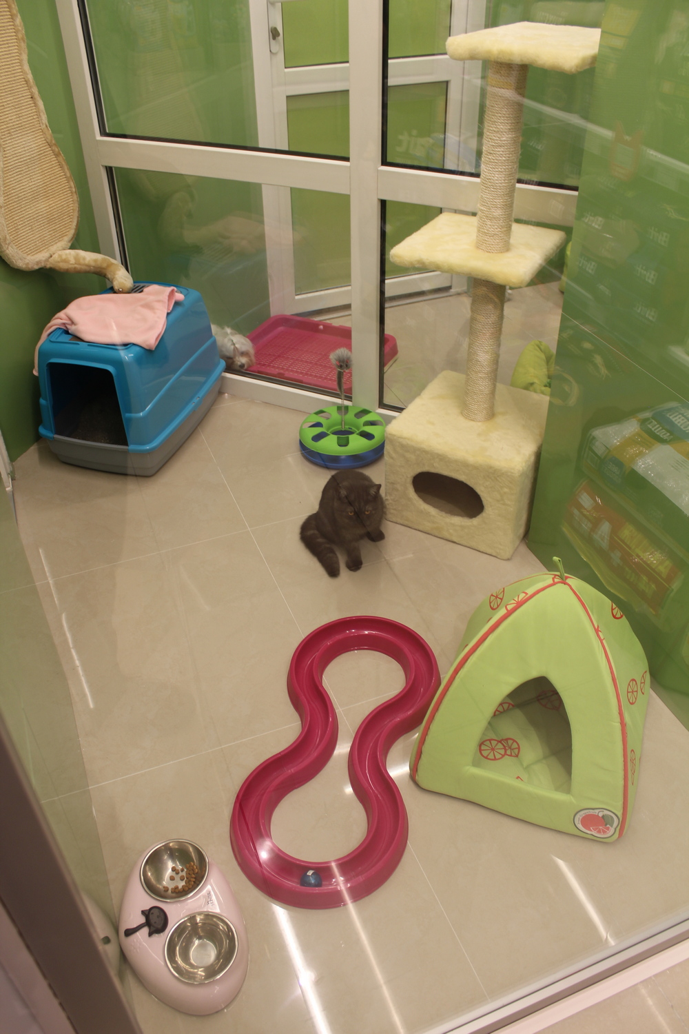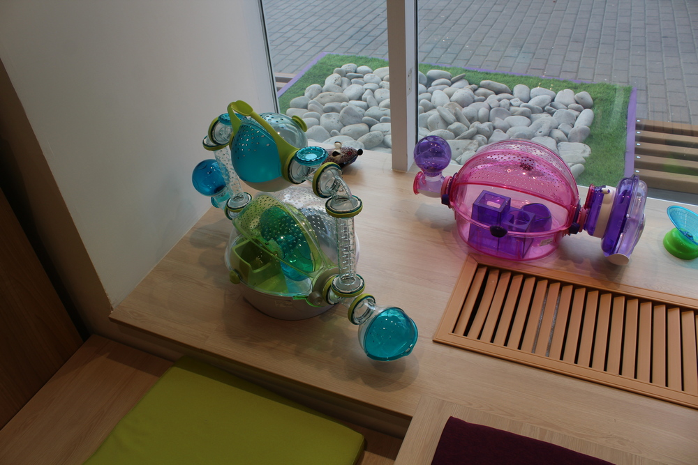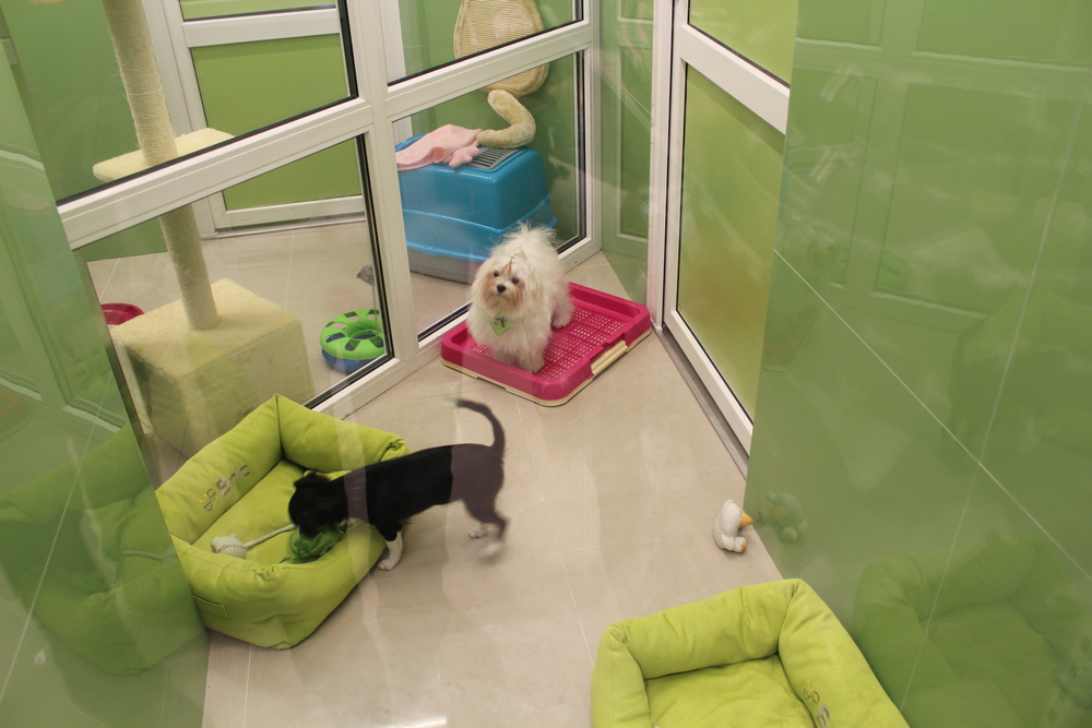 Також на першому поверсі розташований «живий куточок», де відвідувачі можуть розчулитися собачкам і котикам. А щоб тварини не нудьгували, іноді вони ходять один до одного в гості.