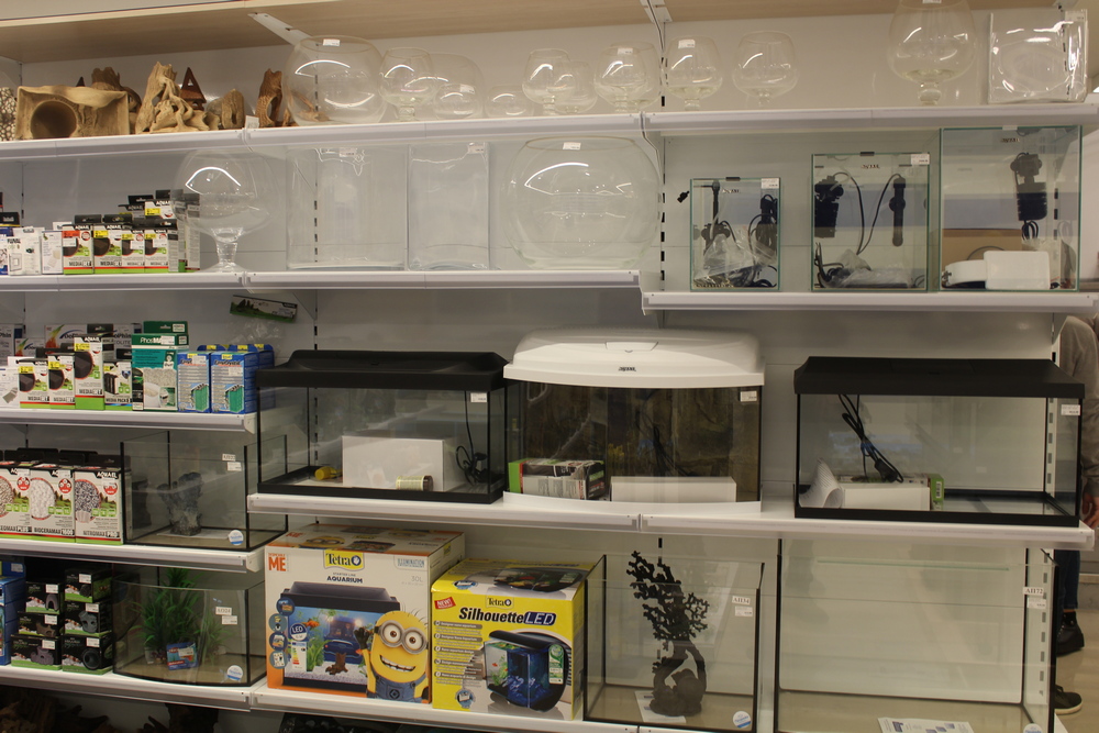 Для любителів менш гучних вихованців в магазині пропонують кілька видів риб. Причому акваріуми представлені на будь-який смак і гаманець – від найпростіших до новачків до складних програмованих комплексів. Під стать і декорації для їх оформлення – від найелементарніших до справжніх творів мистецтва.