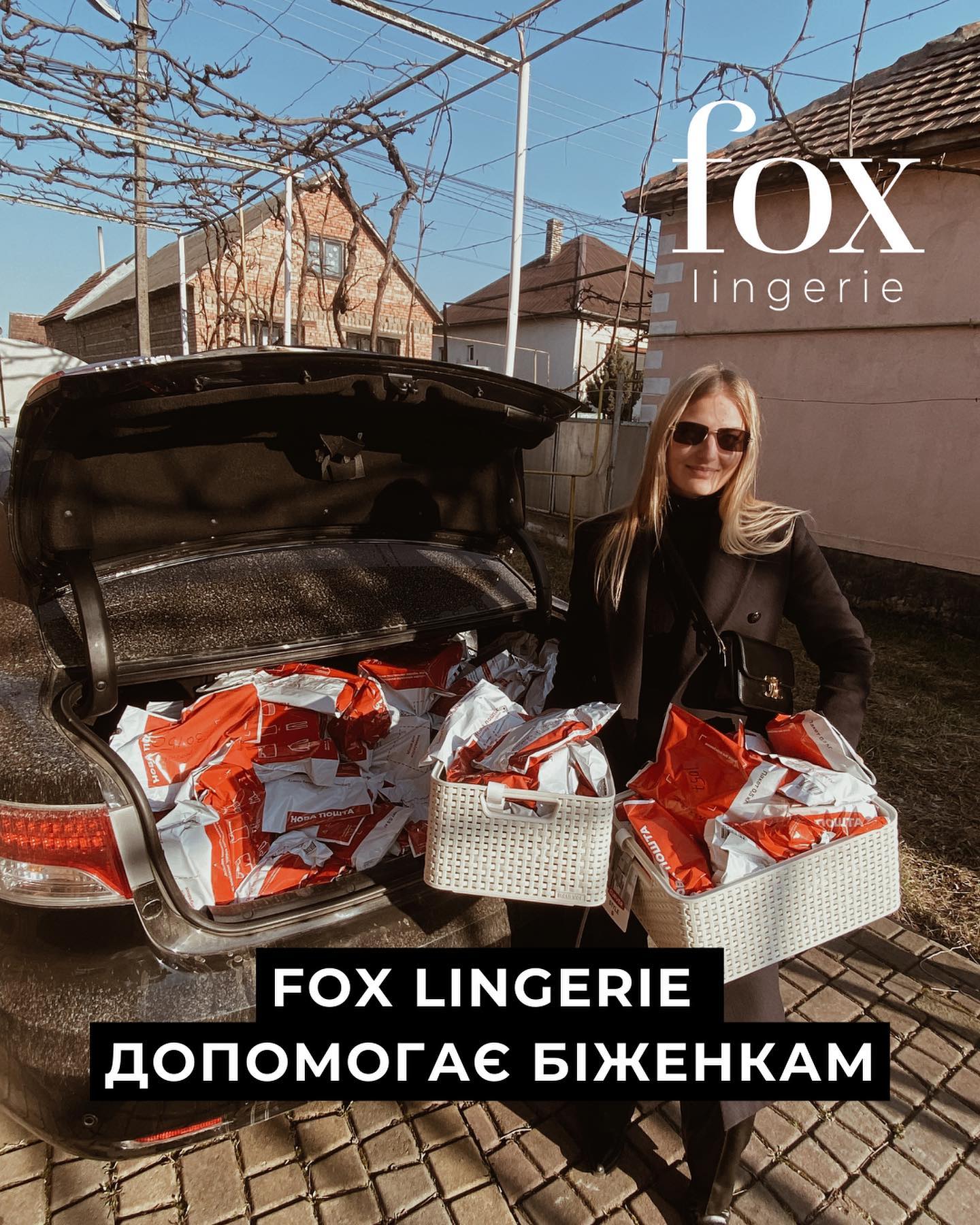 Бренд спокусливої жіночої білизни Fox Lingerie намагається допомагати ЗСУ, волонтерам та медикам, зокрема організовує та доставляє гуманітарну допомогу, передає рації, медикаменти, продукти та павербанки.