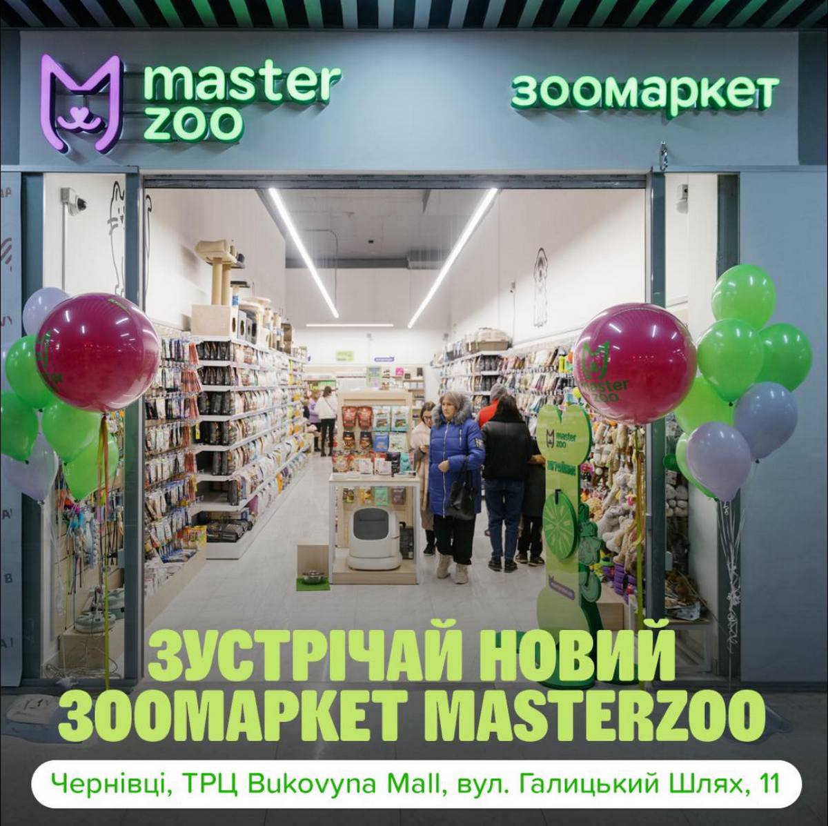 У грудні мережа магазинів зоотоварів MasterZoo розширилася ще на дві локації. Перша торгівельна точка почала роботу 16 грудня в Києві на бульварі Лесі Українки, 34, а друга — в новому ТРЦ Bukovyna Mall в Чернівцях. Наразі ритейлер має вже 204 магазини.