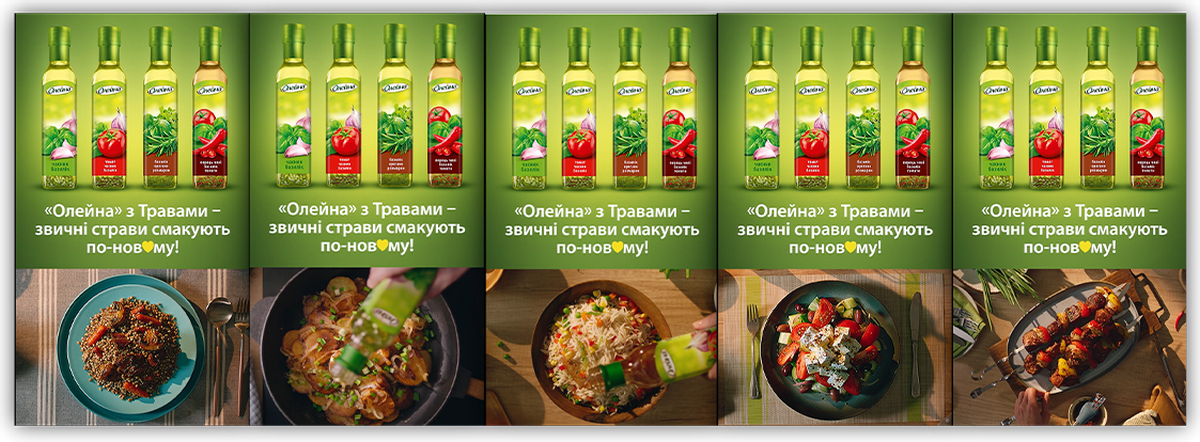 У кожному ролику демонструвалося одразу кілька сценаріїв використання продукту — від гарнірів і каш до м’яса та гарячих страв. Це дозволило відійти від асоціації «олія з травами — лише для салатів» і одразу закладати менш сезонну культуру споживання.