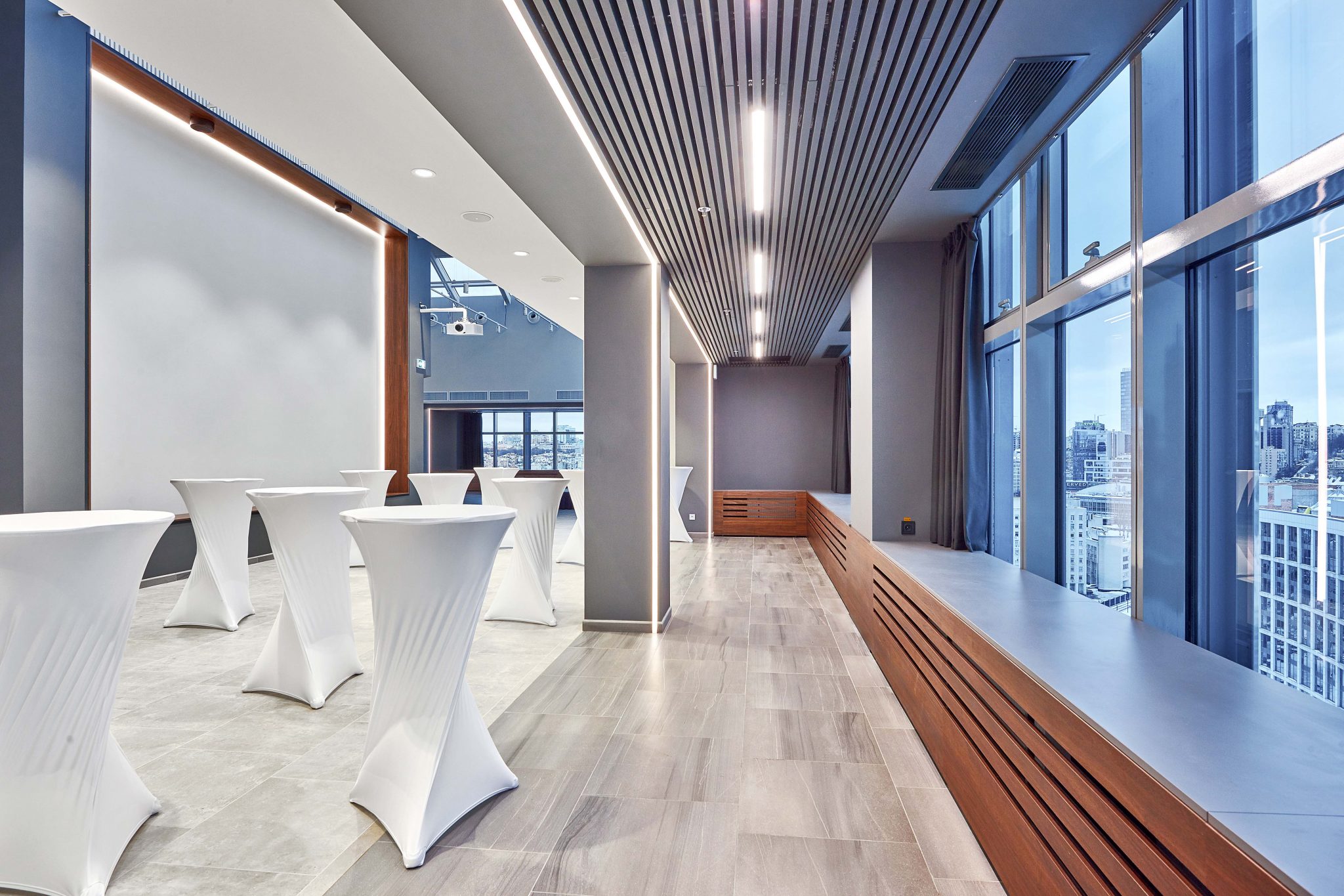 Конференції, вечірки, майстер-класи, засідання або ділові зустрічі – будь-який захід пройде успішно в нових залах столичного готелю: 5 функціональних стильних переговорних кімнат на 2 поверсі та сучасний простір з 5 конференц-залами та елегантною зоною для кава-пауз на 18-му. Широкі можливості нового івент-майданчика на 20 поверсі ідеально підійдуть для проведення банкетів, весільних заходів, коктейльних прийомів та інших екстравагантних світських подій.