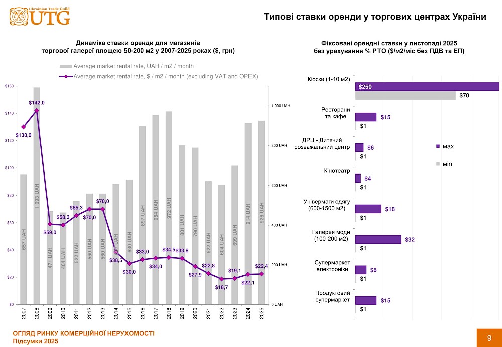 Експерти зазначають, що в якісних ТРЦ з сильним tenant-mix та розвиненою F&B-екосистемою ставки потроху зростають, у менш ліквідних локаціях орендна політика залишається гнучкою, з акцентом на варіативну орендну плату та індивідуальні умови для орендарів.
