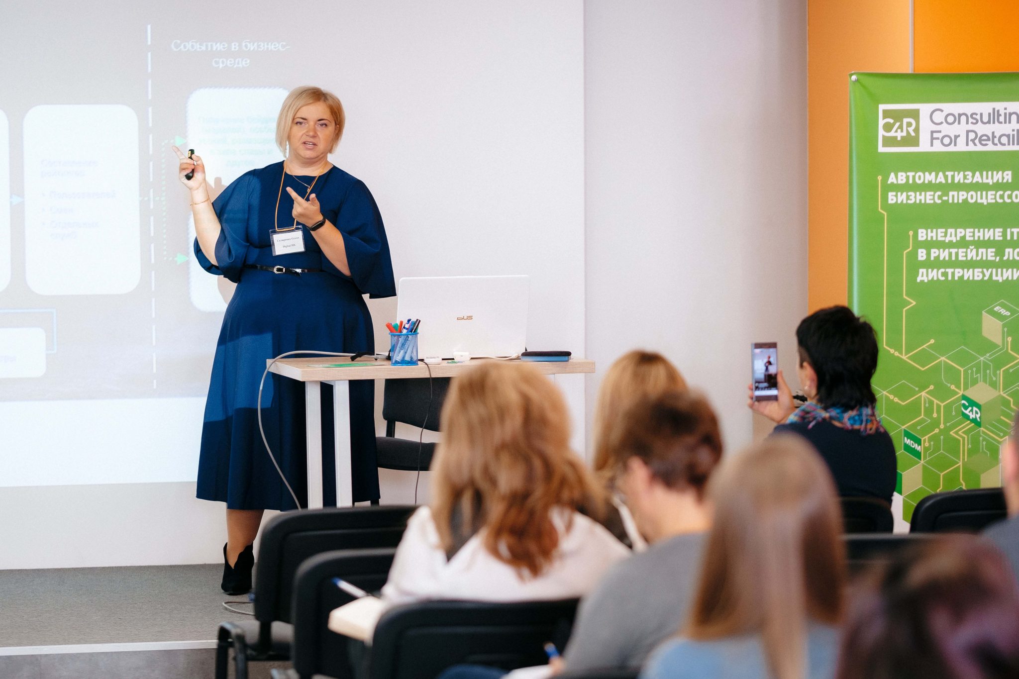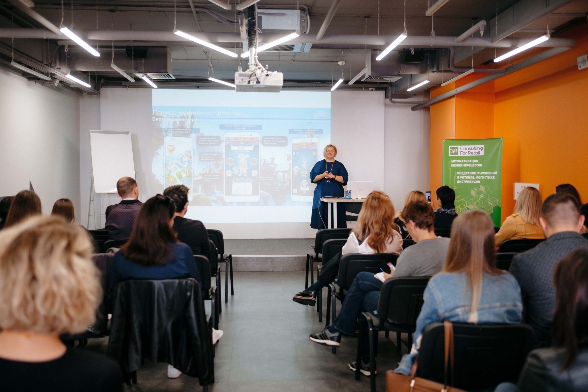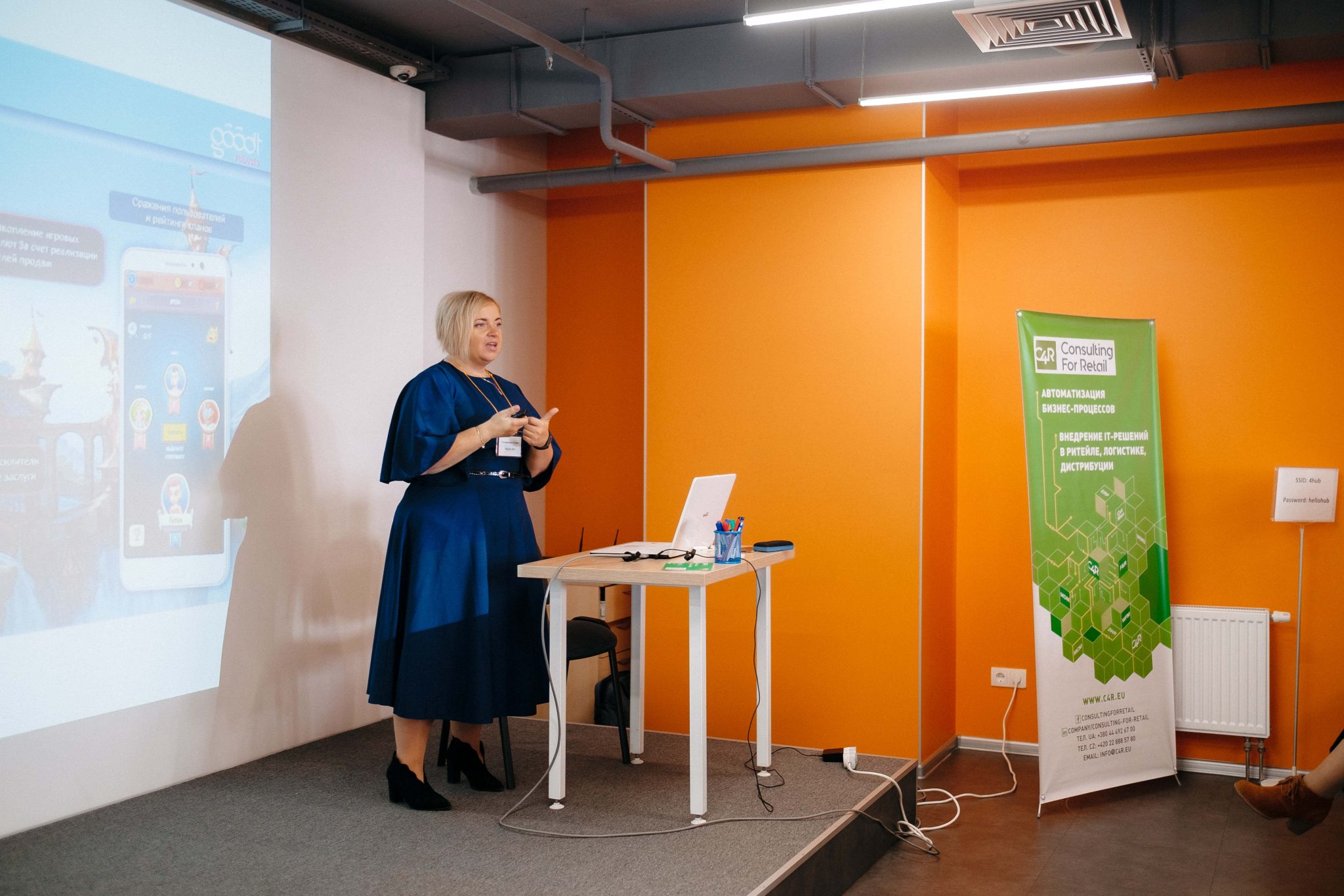 У першому блоці ділової програми виступила Олена Скляренко – керівник напрямку Digital HR компанії Consulting for Retail. Темою її доповіді стало «Управління персоналом магазину», в рамках якої вона розповіла про ефективне управління фондом оплати праці з прив’язкою до товарообігу, оптимізацію витрат трудогодин персоналу магазину, зони економії та залучення через гейміфікації.