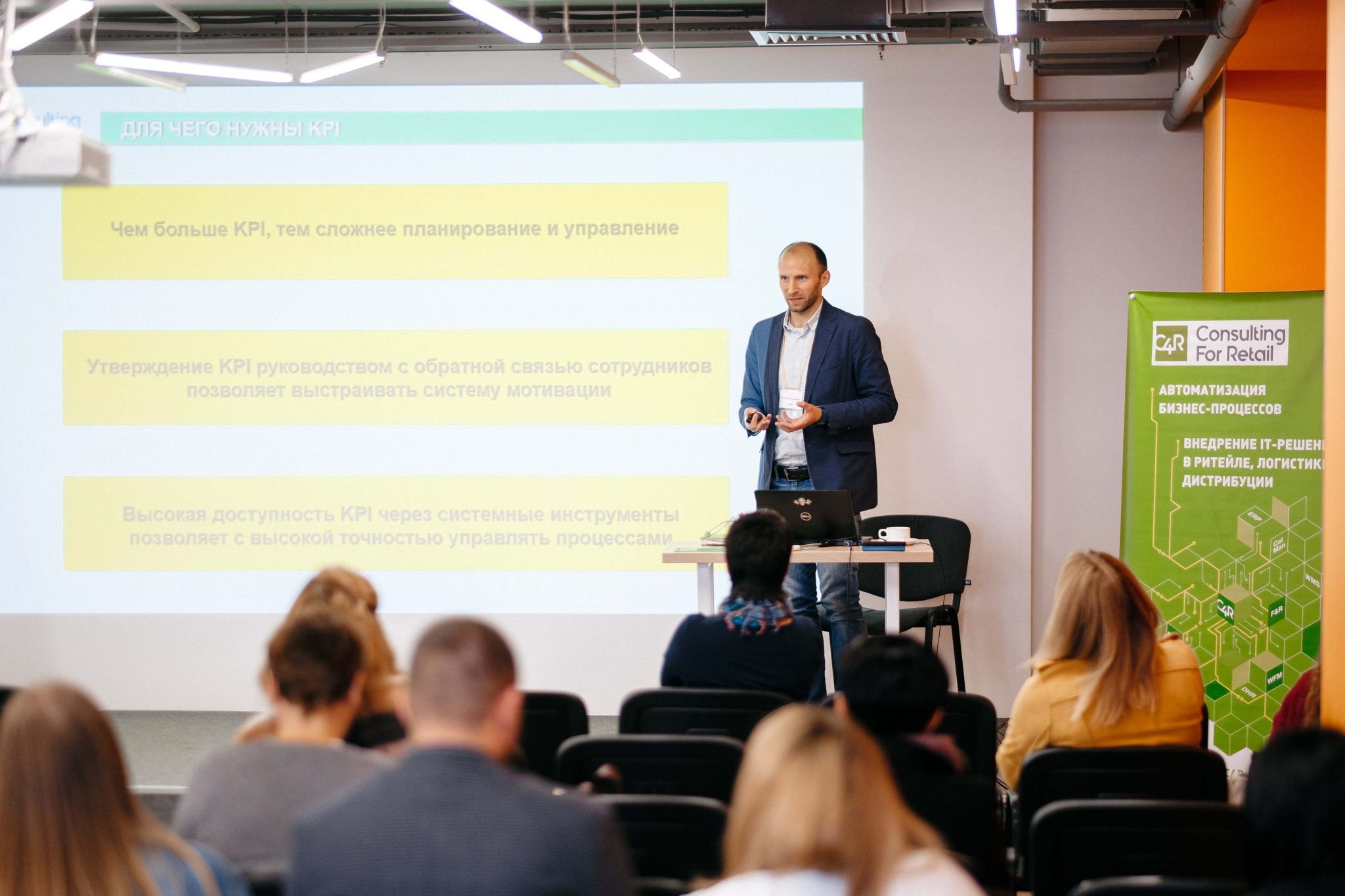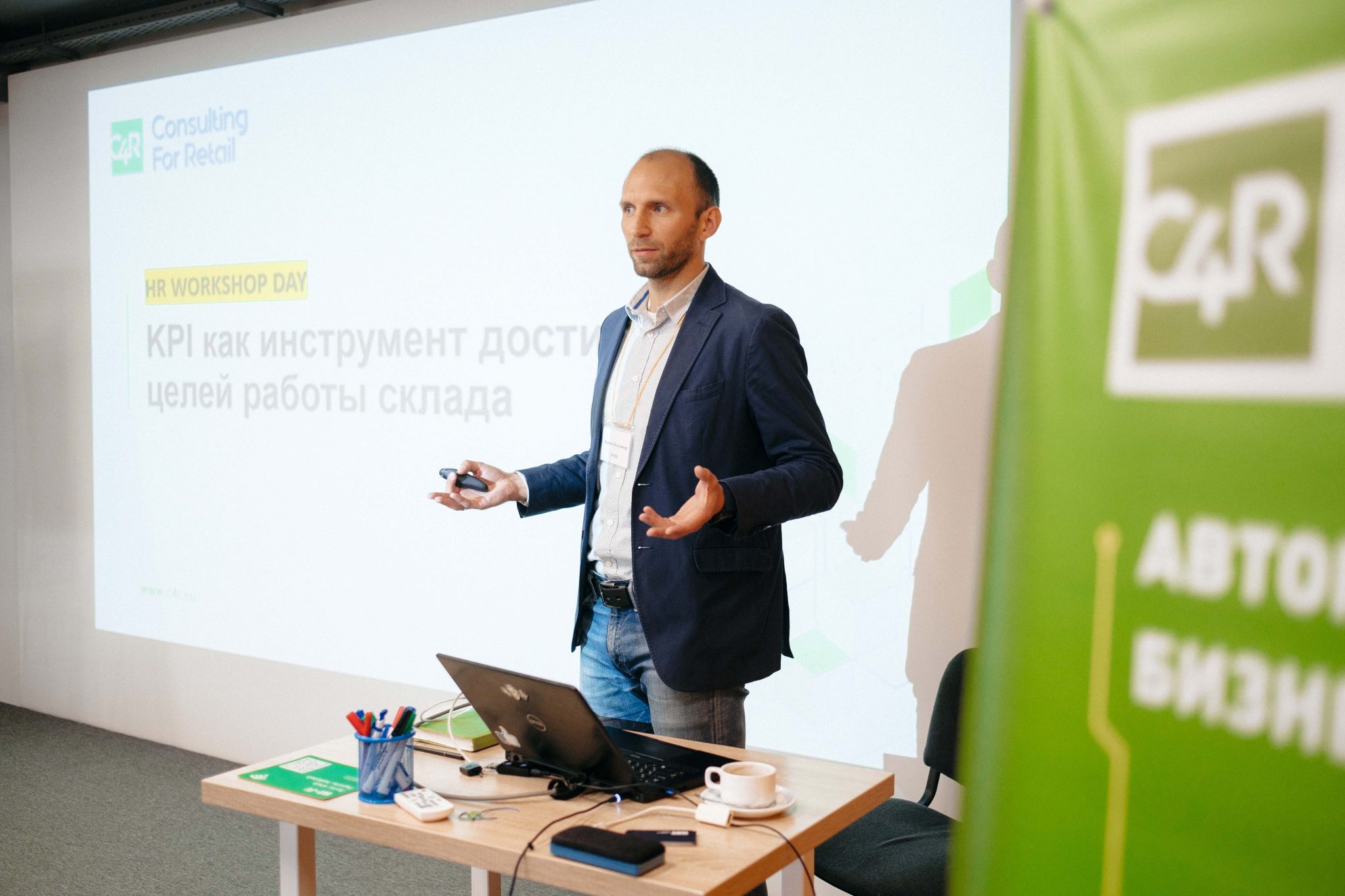 Після кава-брейку слово взяв Володимир Адамов – керівник напрямку WMS компанії Consulting for Retail. Він розповів про управління та мотивацію персоналу складу, а також KPI як інструмент досягнення цілей: для чого вони потрібні персоналу складу, які є способи реалізації оцінювання і як найкраще підводити підсумки результатів.
