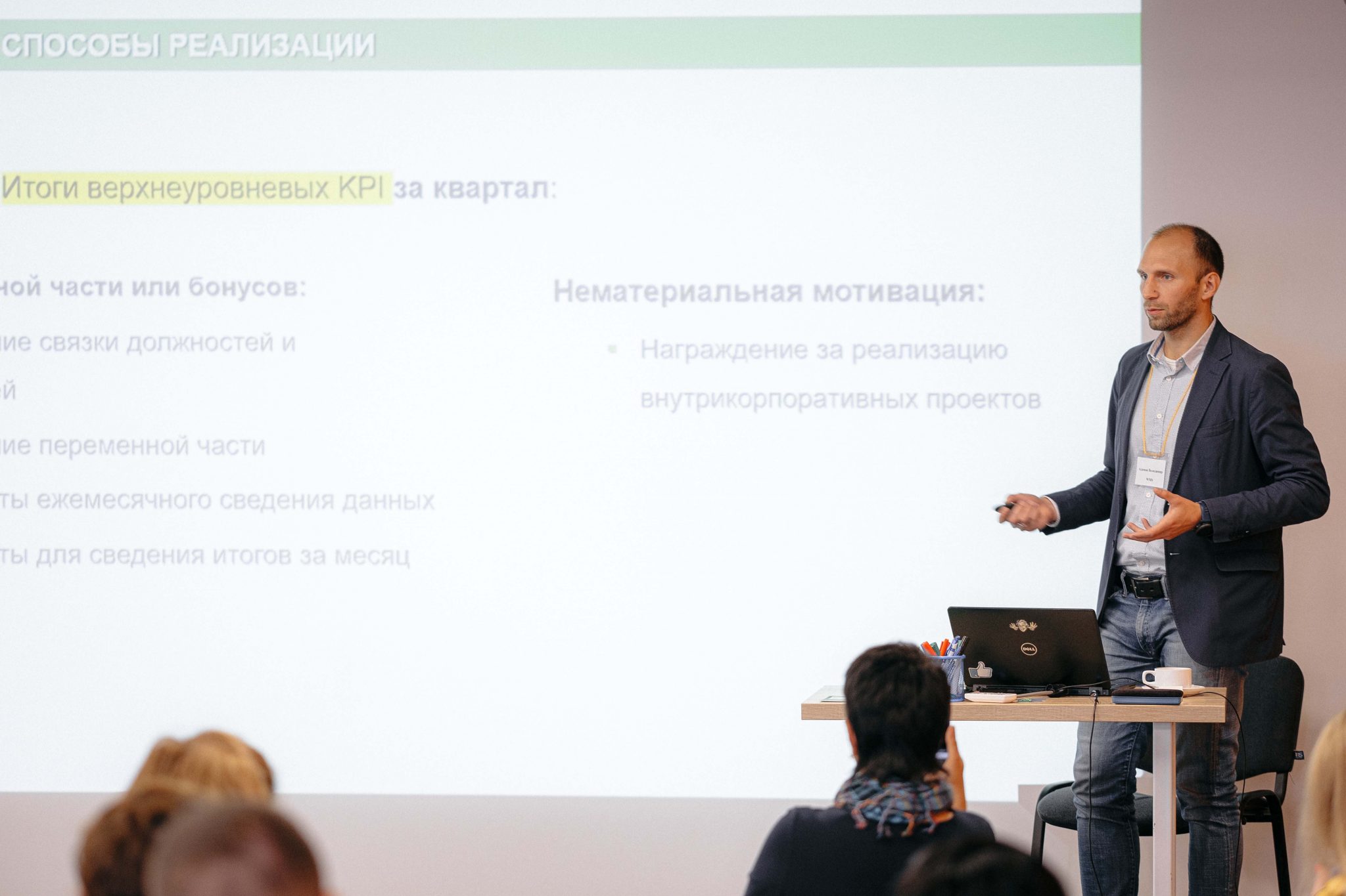 Після кава-брейку слово взяв Володимир Адамов – керівник напрямку WMS компанії Consulting for Retail. Він розповів про управління та мотивацію персоналу складу, а також KPI як інструмент досягнення цілей: для чого вони потрібні персоналу складу, які є способи реалізації оцінювання і як найкраще підводити підсумки результатів.