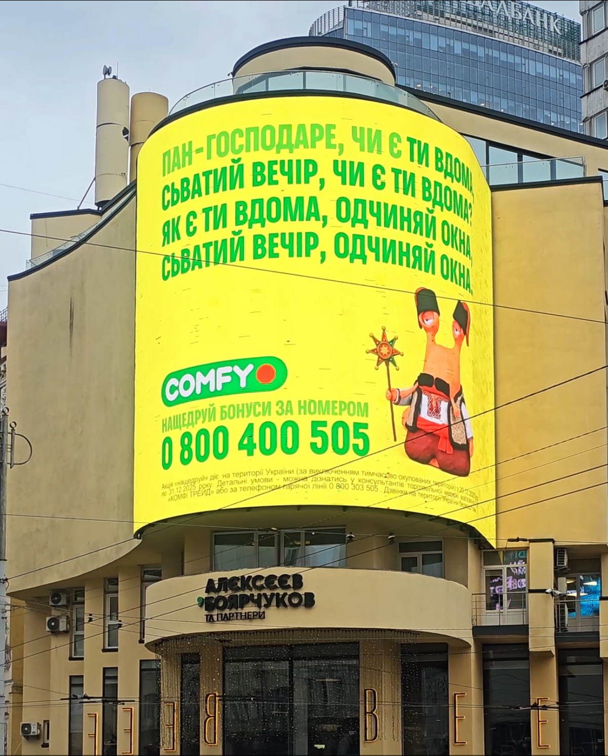 У різдвяно-новорічний період Comfy також продовжили розвиток кампанії з новим героєм – Равликом, який з’явився ще в листопаді як амбасадор кампанії «оплата щастинами». До святкового сезону герой отримав нове візуальне прочитання: його одягли в традиційний український стрій і доповнили автентичними різдвяними атрибутами. Він закликав українців телефонувати на гарячу лінію та ділитися власними варіаціями українських пісень. Так Равлик, окрім символу зручної оплати, став повноцінним святковим персонажем із національною айдентикою – героєм, який асоціюється не тільки з вигідними пропозиціями, а й із самим відчуттям Різдва.