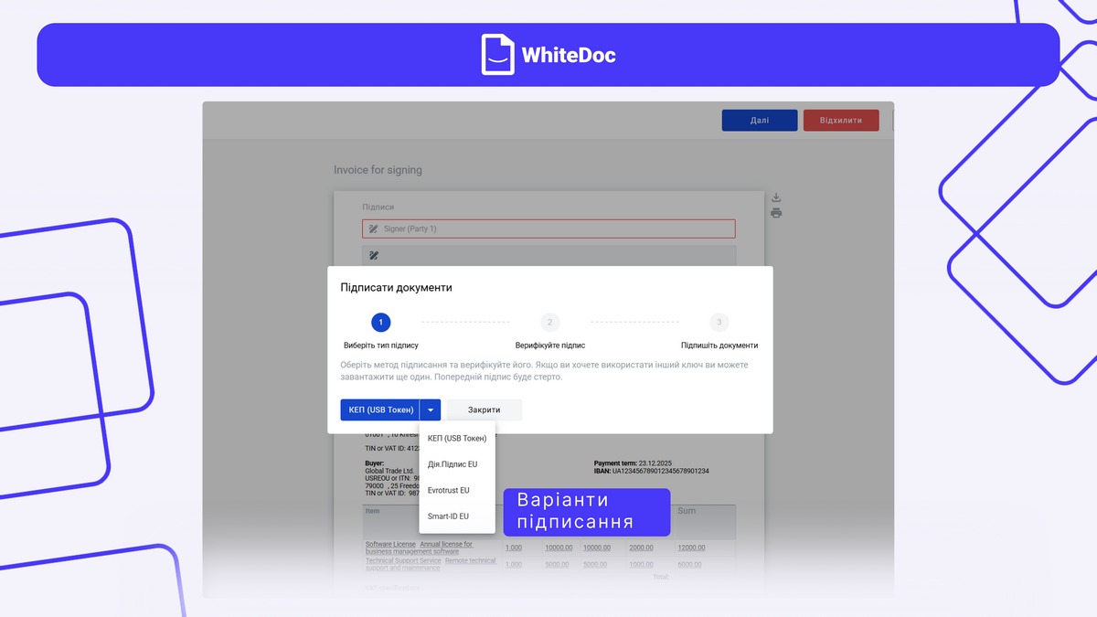 Українська платформа електронного документообігу WhiteDoc першою на вітчизняному ринку впровадила підтримку міжнародних кваліфікованих електронних підписів (QES). Завдяки інтеграції з провайдерами підписів із EU/EEA Trusted Lists українські компанії тепер можуть підписувати документи з іноземними партнерами онлайн.