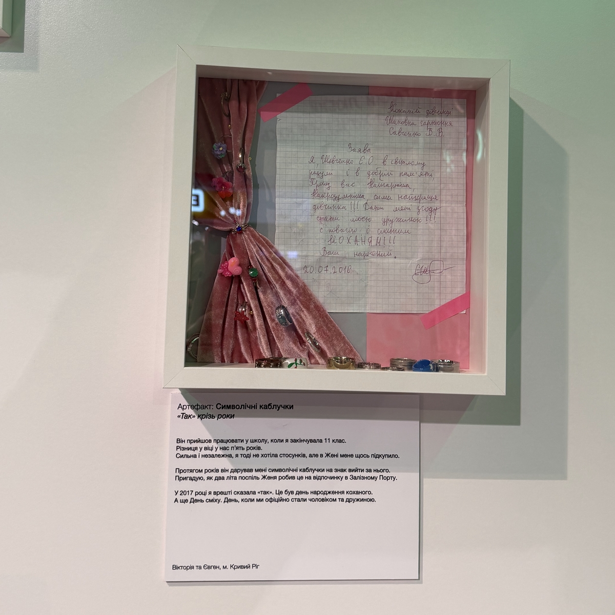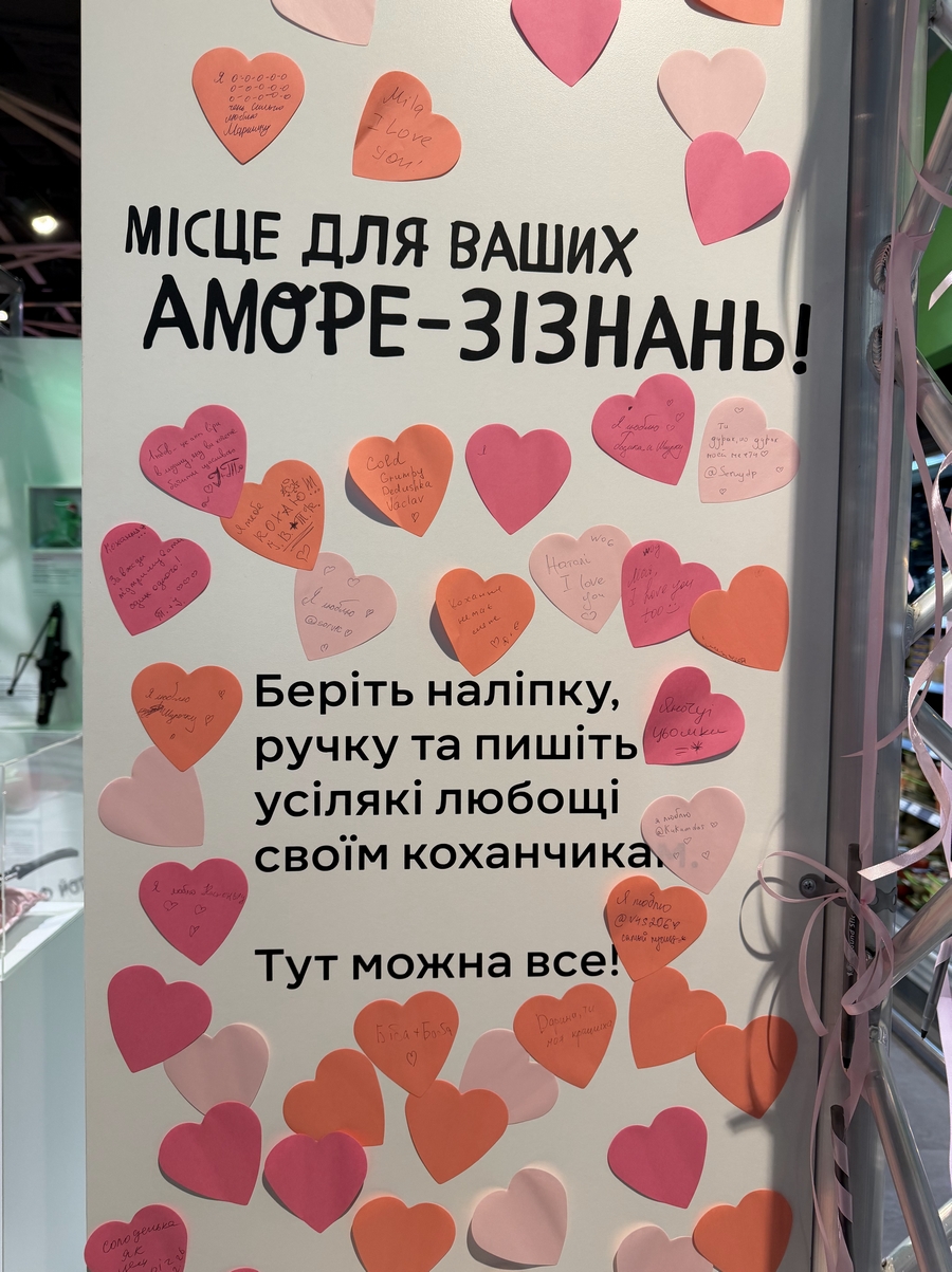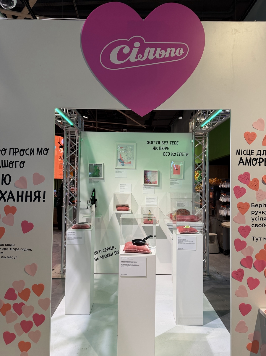 У Сільпо в ТРЦ Gulliver клієнти можуть відвідати «Музей кохання». Тут у прозорих боксах — речі з історією: плюшевий динозавр, старий телефон із дивакуватим зізнанням, жетон метро після побачення в травмпункті, сковорода, подарована на першому побаченні, і навіть домкрат. Поруч — таблички з реальними історіями, якими поділилися клієнти Сільпо про ці речі. Для тих, хто не має свого артефакту або не встиг передати в музей, обладнали стіну, на якій можна залишити зізнання або поділитися своєю історією.