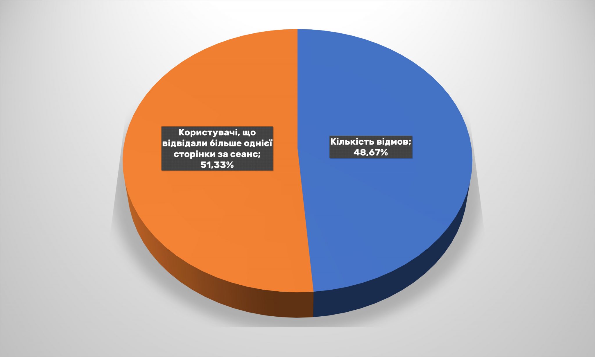 Також дещо зменшилась кількість відмов, тобто відвідувачів, які покидають сайт без покупки. Але зміни не критичні: близько 50% відмов – норма для українського e-commerce.