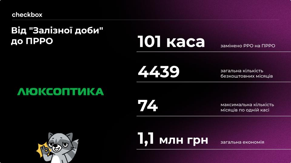 Якщо це підсумувати – майже на 4500 безкоштовних місяців компанія отримала сервіс цифрової фіскалізації від Checkbox. Таким чином економія, яку отримала Люксоптика, склала понад 1 млн грн – будь-який бізнес буде радий таким цифрам.