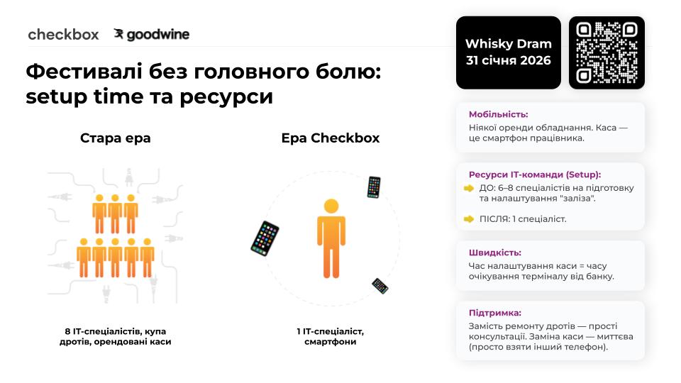 Мобільний застосунок Checkbox ми також почали використовувати на організаціях фестивалів, зокрема на фестивалі Whisky Dram, який відбудеться 31 січня.