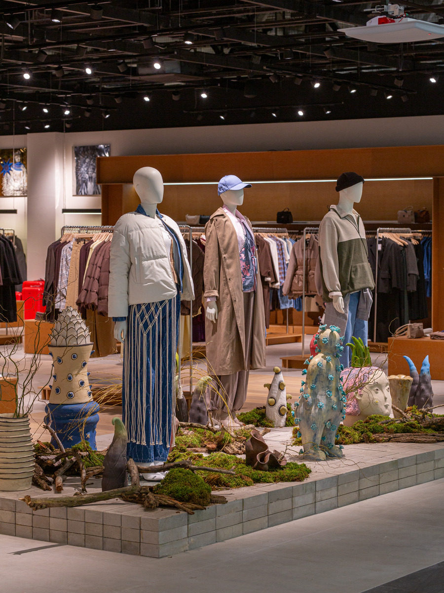 Спеціально до відкриття вхідну групу у новому магазині перетворили на арт-інсталяцію “Зачарований ліс” у колаборації з українськими митцями та майстрами. Тут представлені керамічні арт-обʼєкти від бренду Maslo Ceramics, майстри якого у своїй творчості переосмислюють взаємозвʼязок природи та людини та кераміка ручної роботи від Darya Pedorenko Ceramics. Декоровано інсталяцію мохом, гілками та корою дерев з лісів Київщини.