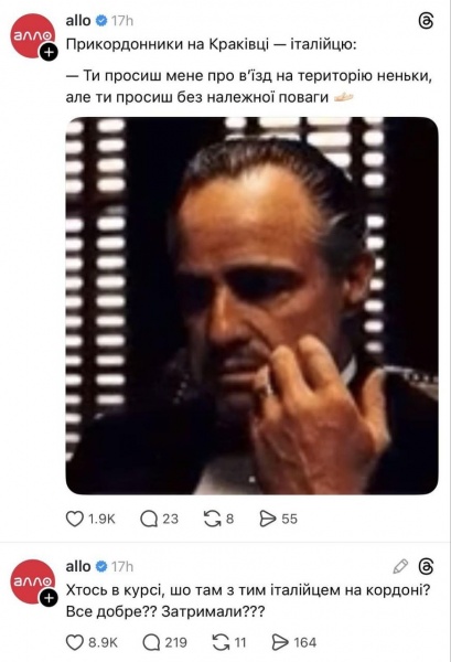 Мережа Алло нагадала італійцю про повагу до неньки та що українці можуть бути крутішими за "хрещеного батька":