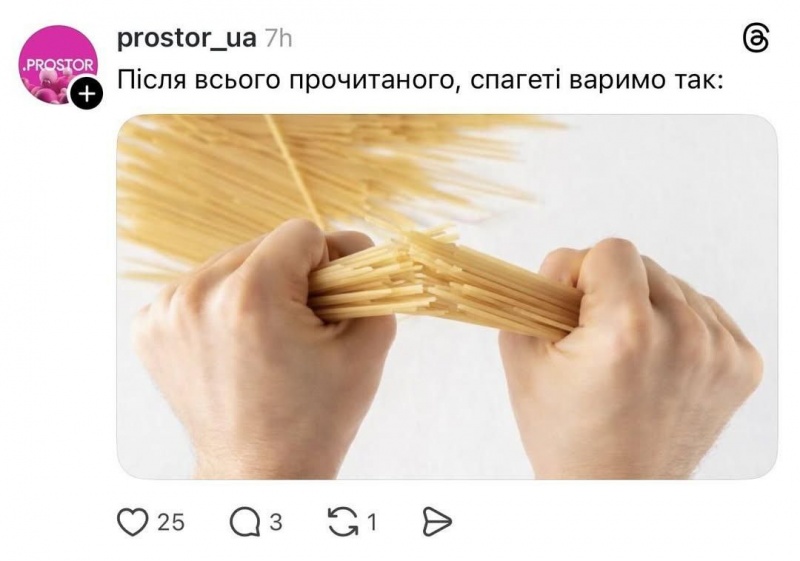 Prostor закликав відтепер ламати спагеті перед тим як кидати їх у кип'яток: