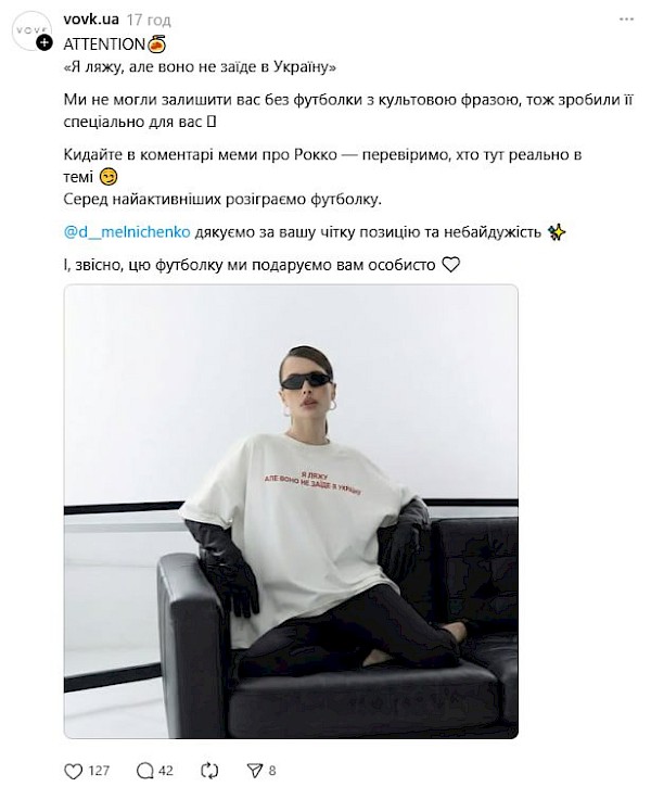 Український модний бренд Vovk швидко запустив продаж футболок з фразою, яка за добу стала культовою: