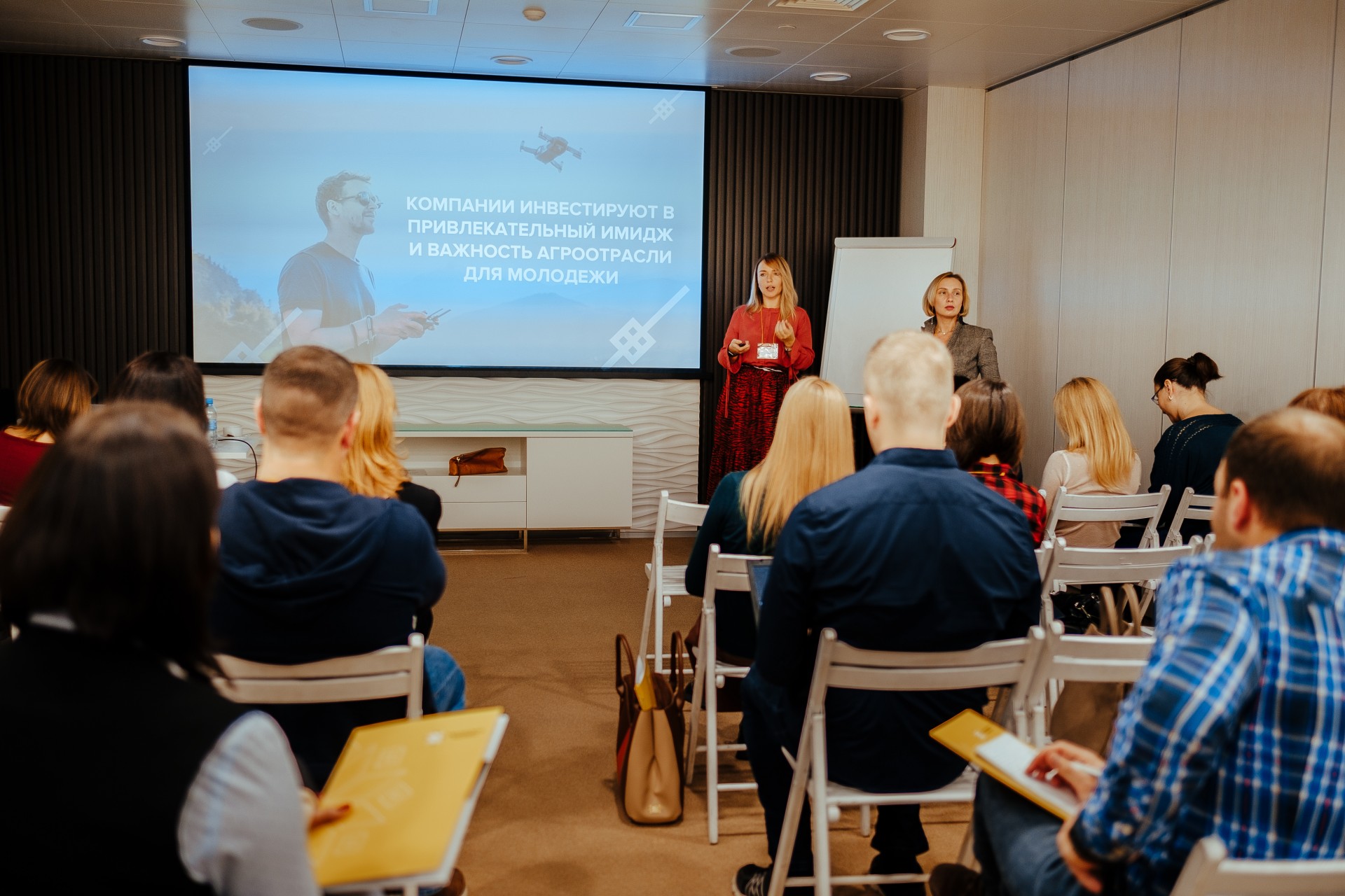 Перший блок програми складався з презентацій провідних експертів ринку. Першими виступили директор із зовнішніх і внутрішніх комунікацій Миронівський хлібопродукт Катерина Корченко і операційний директор Grape Олена Салівон з темою ” МХП СТАРТ. Як влаштувати революцію в бренді роботодавця”. Вони розповіли про боротьбу за талановиті кадри і людей, як найцінніший актив бізнесу будь-яких розмірів. На думку фахівців, майбутнє за брендингом роботодавця і, фактично, воно вже настало. У своєму виступі вони детально розібрали процес HR-брендингу та його перші результати в рамках програми кар’єрного розвитку «МХП СТАРТ» – від досліджень в компанії, інтерв’ю учасників, до стратегії комунікацій бренду роботодавця, рекламної кампанії і digital-екосистеми по роботі з молодими фахівцями.