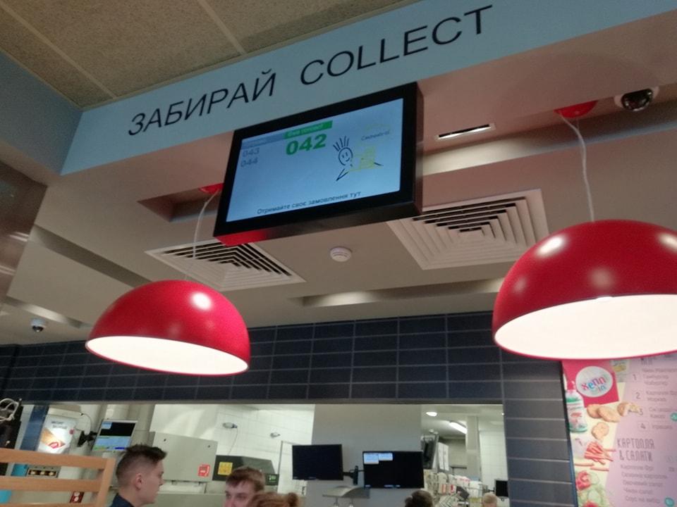 В ресторанах с “опытом будущего” существенно изменилась линия выдачи заказов: теперь она отделена от касс и имеет сверху экран, на котором посетители могут следить за готовностью заказа.