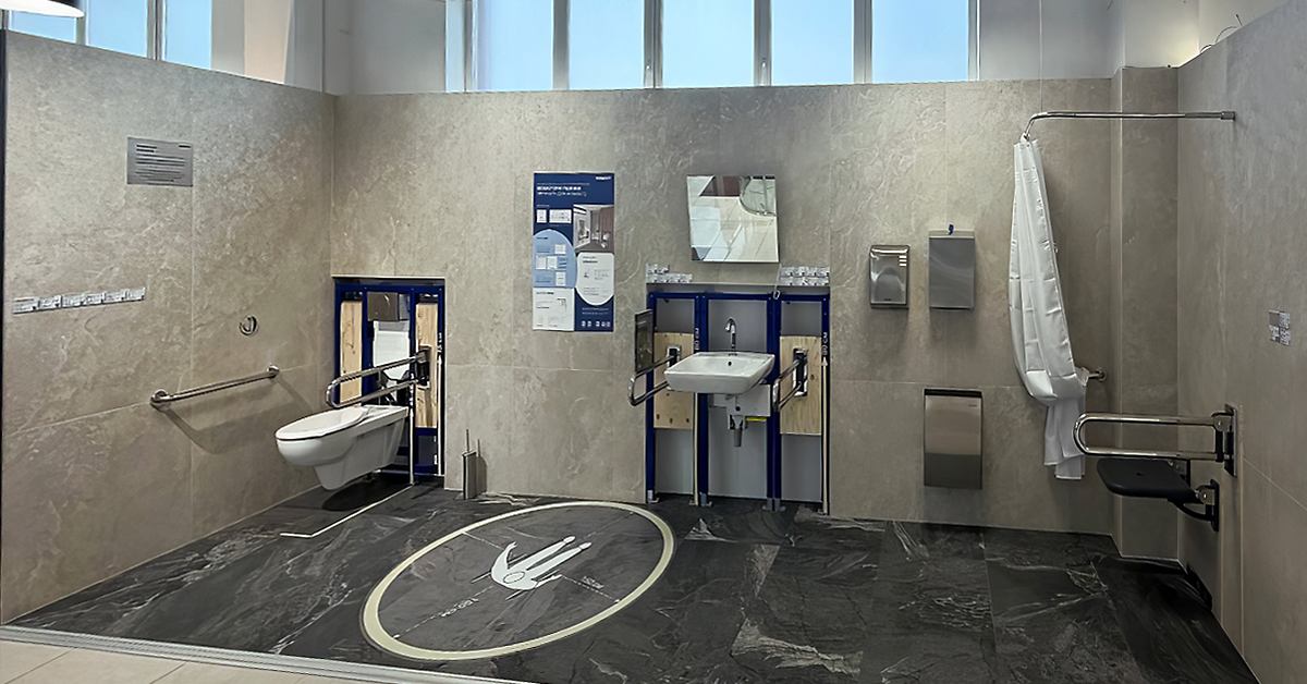 Демонстраційний простір запрацював у магазині Агромат в Хмельницькому ТЦ Комфорт Центр за адресою Старокостянтинівське шосе, 5. Новий шоурум став зразком інклюзивної ванної кімнати, де безпека та функціональність поєднуються з сучасним дизайном.