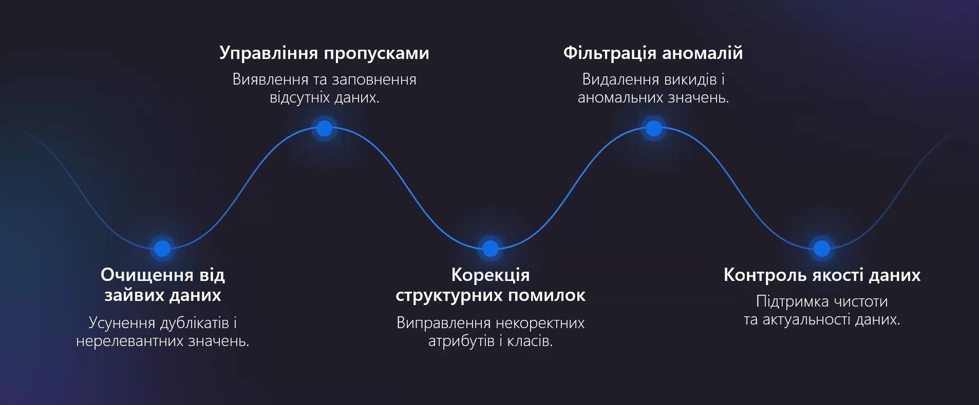 Побудова екосистеми, де за рахунок якісної інтеграції всіх частин не потрібно буде пересилати велику кількість даних – це перший крок для отримання якісних даних. Також є так звані outlier, тобто дані які виділяються із загальної вибірки (аномальні дані).