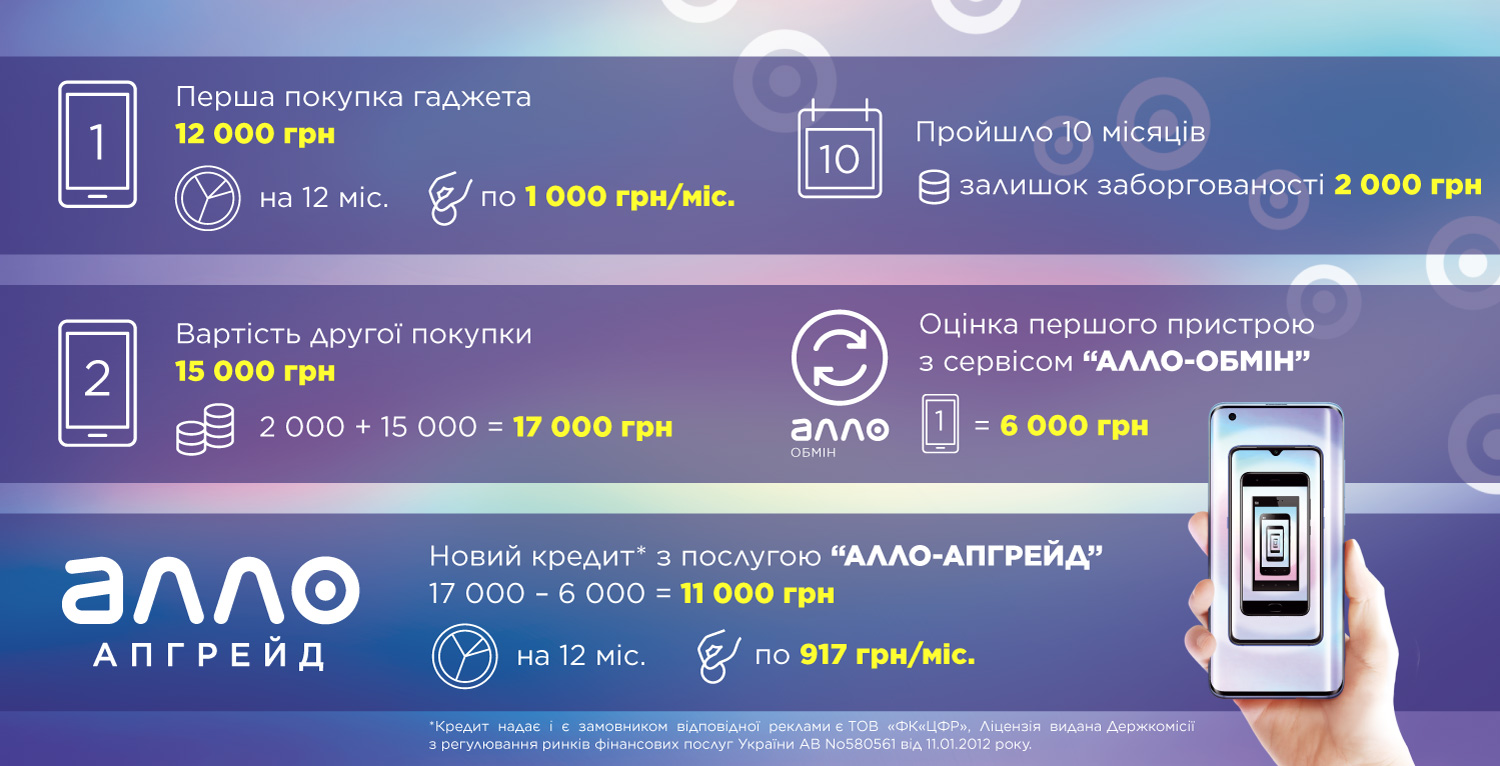 Завдяки “АЛЛО – АПГРЕЙД ” будь-хто може купити один гаджет в кредит – і після кожних 10 місяців тестувати нові моделі без довгих очікувань та заповнення безлічі паперів!