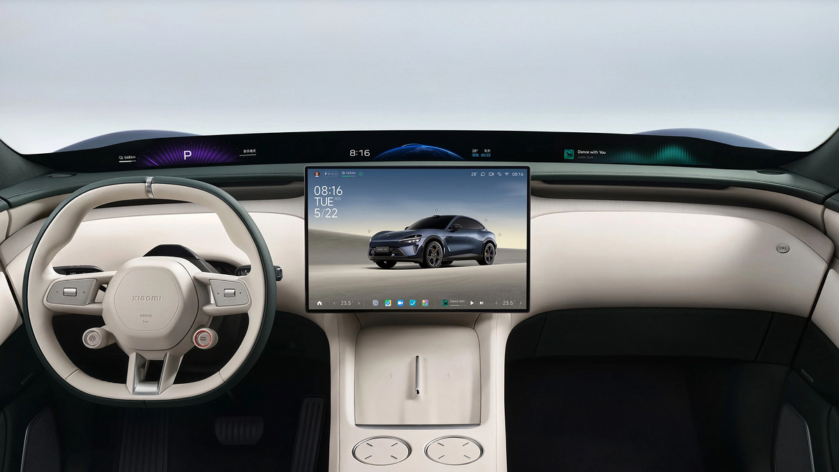 Всі моделі побудовано на 800-вольтовій платформі з підтримкою надшвидкої зарядки. У салоні водій і пасажири почуватимуться комфортно завдяки преміальним матеріалам, продуманим деталям та можливості регулювання нахилу спинок сидінь до 135°. Виробник, як і для седанів Xiaomi SU7, пропонує комбінувати дев’ять кольорів кузова та чотири кольори салону – це зробить кросовер унікальним, під характер власника. Особливою фішкою салону є панорамний 1,1-метровий дисплей HyperVision, який складається із трьох Mini-LED-екранів яскравістю до 1200 ніт, на який залежно від ситуації виводиться потрібна інформація: картографія дорожніх умов у реальному часі, ілюстрація змін у силовій установці та пневмопідвісці, показники приладів, керування медіа та інше.