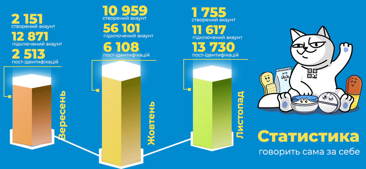 Окремо варто відзначити жовтень: акційна активність у monobank суттєво підсилила залучення нових користувачів і масштабувала підключення існуючої бази. Водночас листопад показав зростання пост-ідентифікацій — тобто реальне використання сервісу в аптеках і цінність для клієнтів.