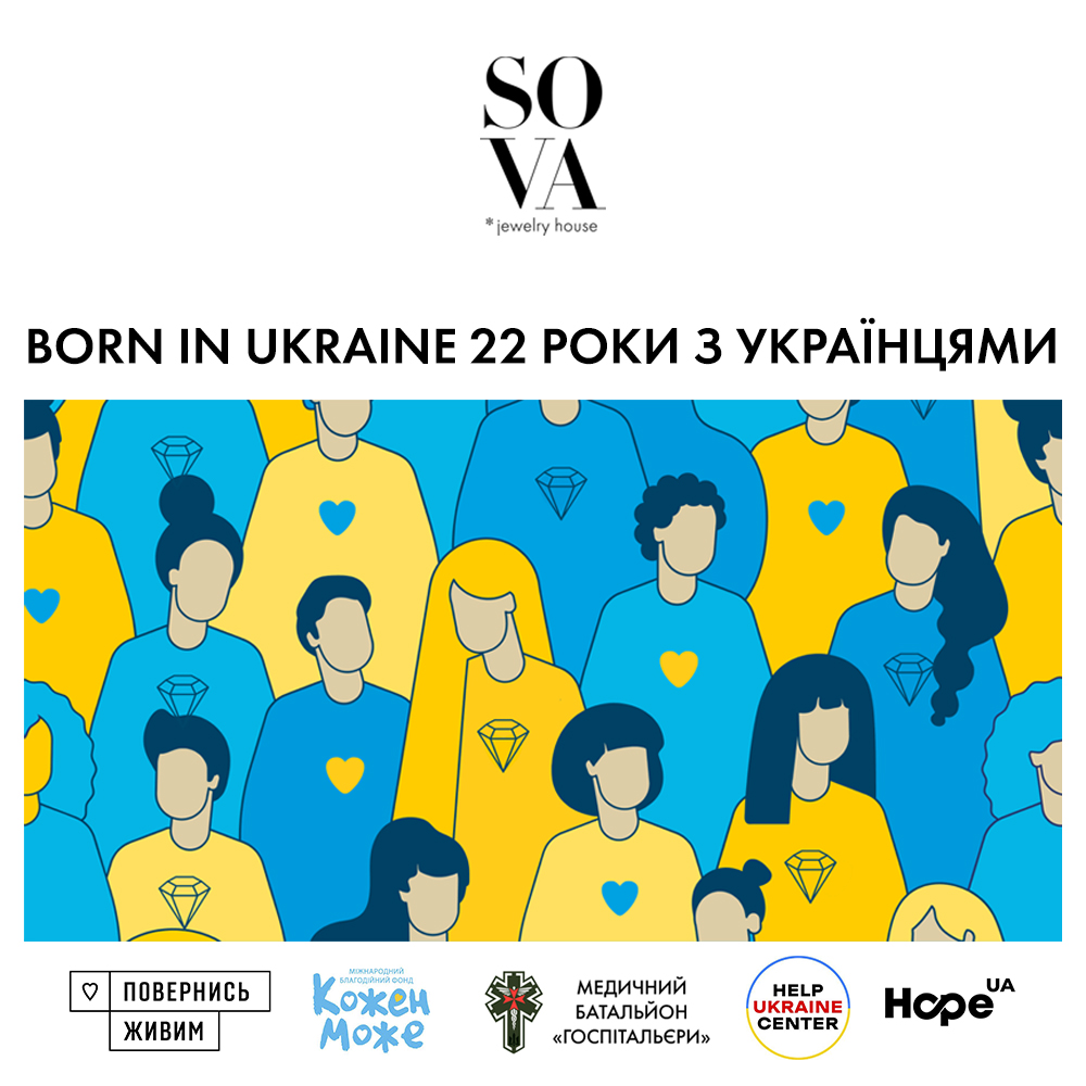 З 1 по 30 червня 5% від продажу кожної прикраси SOVA буде перераховано до однієї з 5 благодійних організацій та фондів, які займаються допомогою українській армії, медикам та родинам, які постраждали від війни. На яку саме допомогу підуть кошти з продажу, клієнт може вирішити самостійно, вказавши організацію при здійсненні покупки. Обрати можна між фондами “Повернись живим”, “Кожен може”, Hope.ua, Help Ukraine Center та медичним батальйоном “Госпітальєри”.