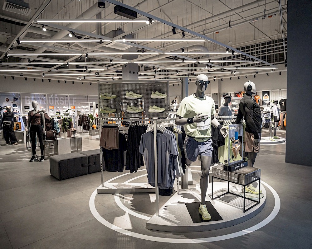 Новий формат Puma - це відповідь на запити сучасного міста. Простір спроєктований так, щоб зробити шлях клієнта інтуїтивним, а вибір екіпірування чи повсякденного одягу - максимально зручним.