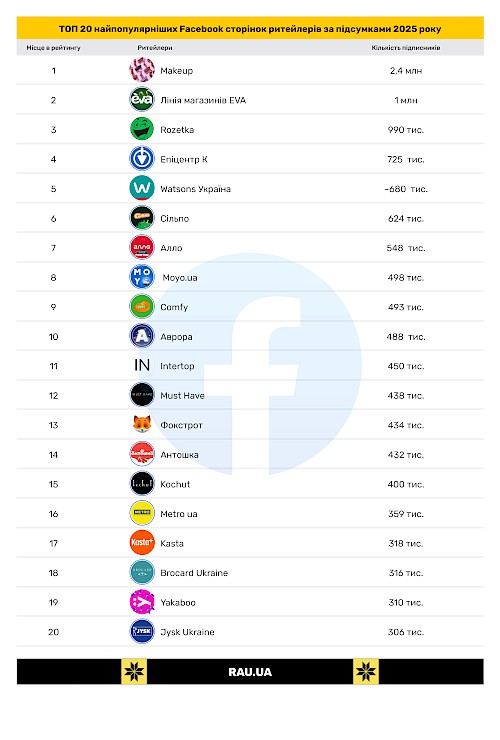 Битва за мільйони: топ 20 сторінок українських ритейлерів у соціальних мережах за підсумками 2025 року