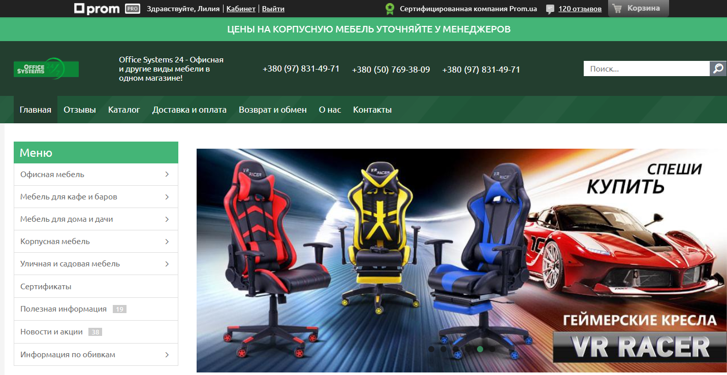Зараз на Prom у нас працює два інтернет-магазини. Кількість товарних позицій на сайті Office Systems24 досягла 1800. Плануємо також проект з продажу товарів до Казахстану через цей маркетплейс. На даному етапі близько 65% замовлень приходять з Prom, інші – замовлення, які ми отримуємо від юридичних осіб і державних організацій, іноді займаємося холодними дзвінками і активними продажами (бази, старі клієнти). Також добре працює «сарафанне радіо».