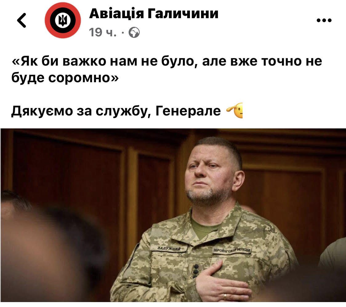 Так само процитував колишнього Головнокомандувача ЗСУ й бренд Авіація Галичини, а також подякував йому за службу.