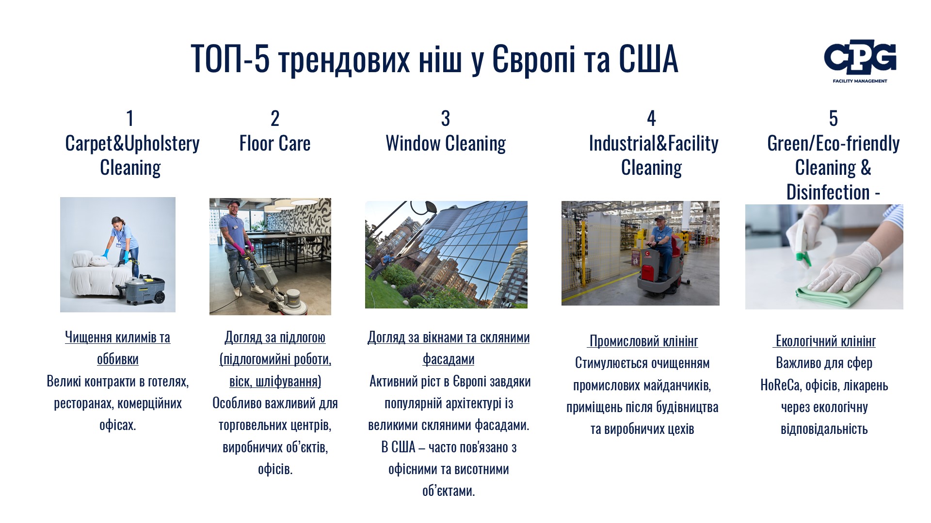 Сфера клінінгу в Україні, Польщі та США має свої відмінності та особливості.