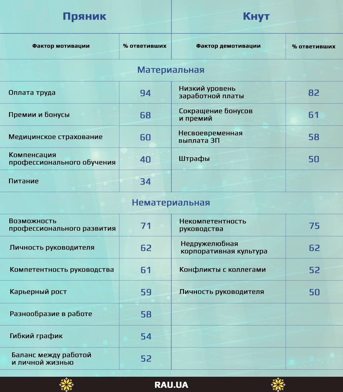 В опитуванні Hays взяли участь 3600 респондентів: 3114 професіоналів і 486 роботодавців. RAU підготувала невелику інфографіку за підсумками опитування.