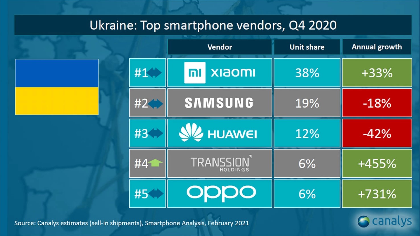Український ринок смартфонів, IV квартал 2020. (Дані: Canalys)