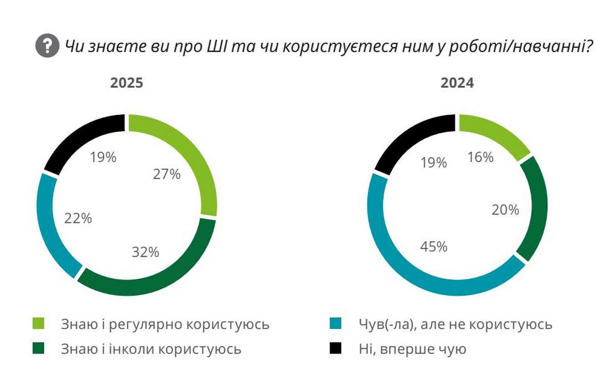 Паралельно зростає роль технологій штучного інтелекту. У 2025 році 27% українців використовували ШІ для роботи або навчання – на 11% більше, ніж роком раніше. Такі інструменти дедалі частіше допомагають шукати інформацію про товари, порівнювати їхні характеристики та знаходити вигідні пропозиції.