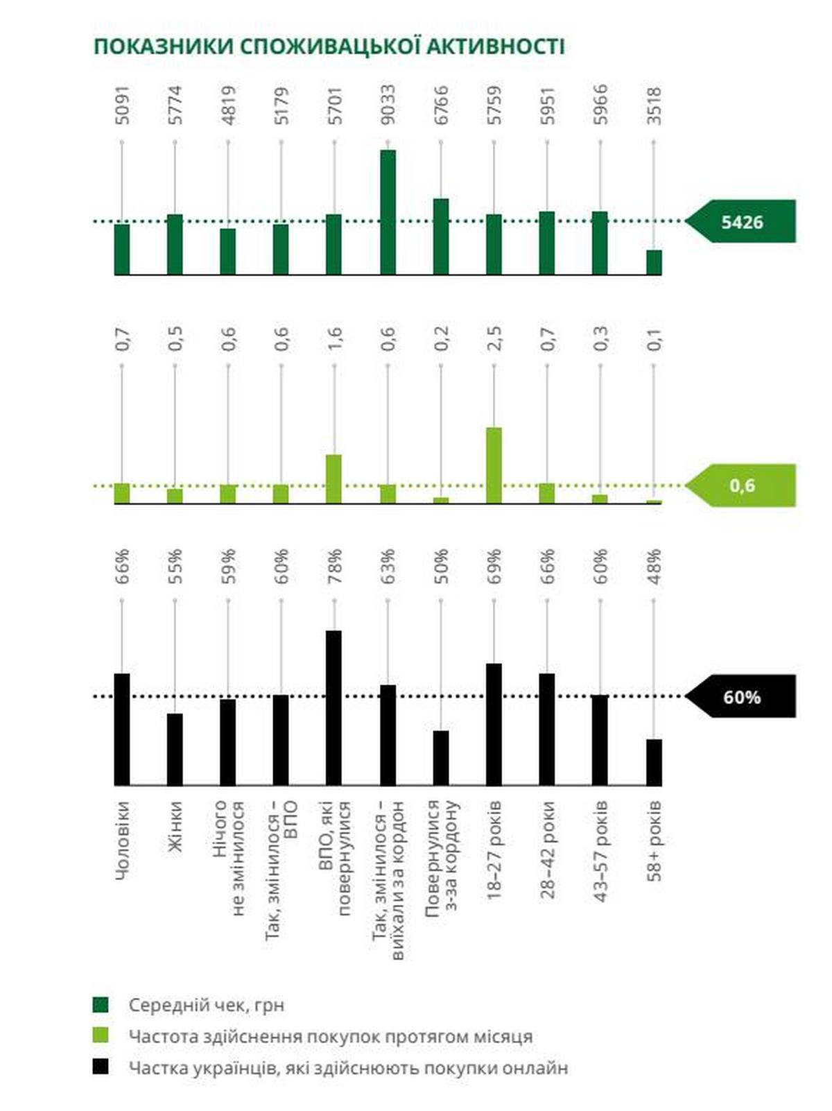 Залежно від категорії частка тих, хто схильний заощаджувати, становить від 31% до 73% (у 2024 році – від 36% до 72%). Загалом у 2025 році купівельна та споживацька спроможність українців залишилася на рівні 2024 року. Радше спостерігається не зміна поведінки споживачів, а її закріплення.