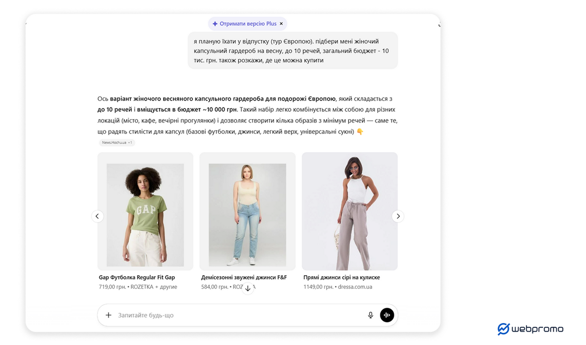 Ніша Fashion є однією з найбільш емоційних та візуально орієнтованих у e-commerce. Шлях покупця часто починається не з конкретного товару, а з натхнення або пошуку свого стилю. Трафік генерується через запити на кшталт: «з чим носити коричневі лофери?» або «підбери капсульний гардероб для відпустки». ШІ-алгоритми аналізують тренди та посилаються на маркетплейси, які мають не просто каталог товарів, а готові образи та якісний візуальний контент.